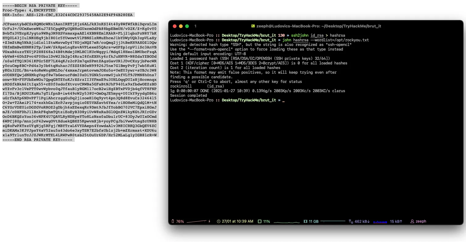 Crack the RSA key you found, what is John’s RSA Private Key passphrase?